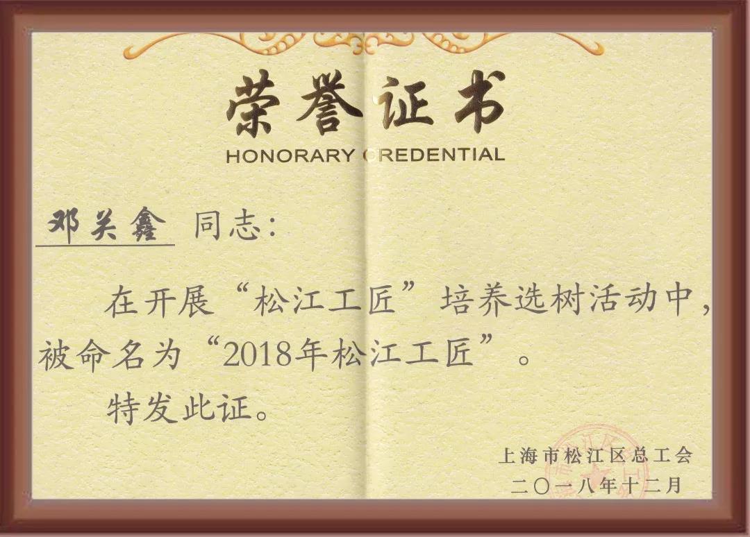 【熱烈祝賀】鄧關(guān)鑫榮獲首屆“松江工匠”榮譽稱號