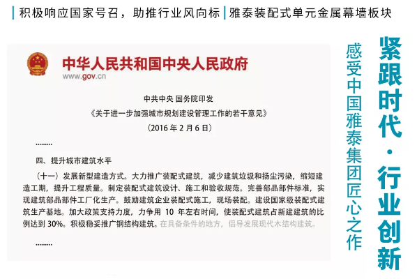 作為雅泰裝配式單元金屬幕墻筑造史上的又一里程碑事件,該項目著重強調(diào)了雅泰在金屬復合材料領域的開放屬性,以及對其生產(chǎn)工藝水平不斷提升、自我超越的承諾。此次項目的順利落成,不僅代表著雅泰在裝配式單元金屬幕墻板塊領域的又一進步,更見證了中外以經(jīng)濟全球化為核心,以建筑文化相融為紐帶,不斷深化的國際友誼。