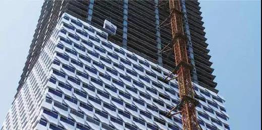 (第一塊雅泰裝配式單元幕墻板塊順利起吊安裝)