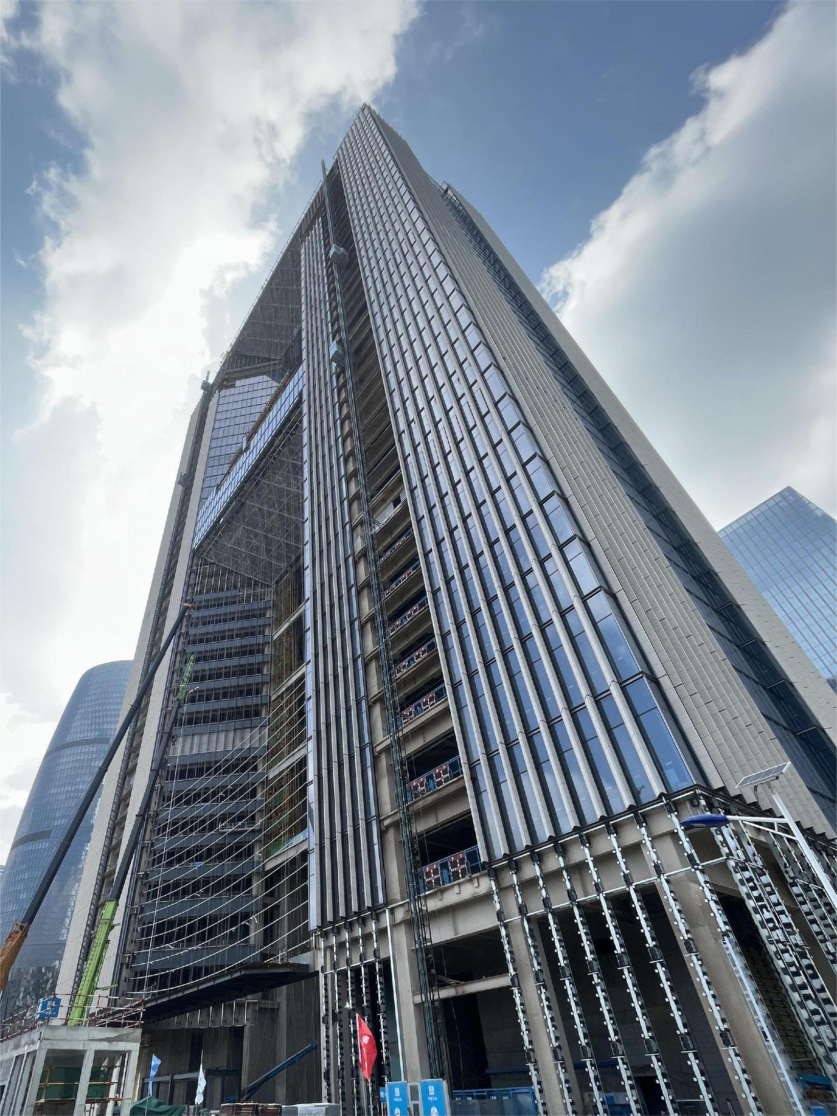 該工程由中國建筑第八工程局有限公司承建,雅泰實業(yè)集團承接外墻裝飾部分材料供材約40000平方米。項目體量大、工期短,目前工程全面進入外墻裝飾階段,集團全力保障該項目的供材,預計10月完成外幕墻全部封閉。封閉后可以完整地看到大廈上部呈現(xiàn)為一個雄偉的大門,彰顯國家對信息建設(shè)的信心和決心,“信息之門”由此而來。