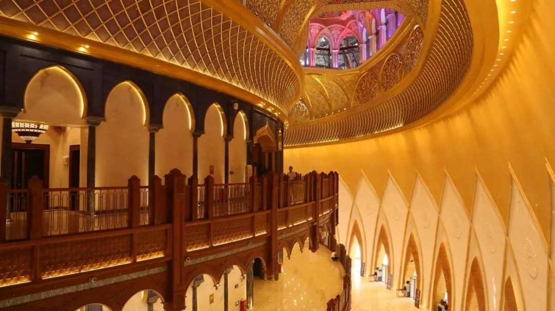 座落于昌吉的新疆大劇院,是中國目前最具民族文化特征的標(biāo)志性建筑,也是印象西域國際文化旅游產(chǎn)業(yè)園的核心建筑。主體坐落在平緩的臺基上,以盛開的天山雪蓮為原型,通過抽象與創(chuàng)新的設(shè)計手法,形成里外套層的穹頂造型主體形象。