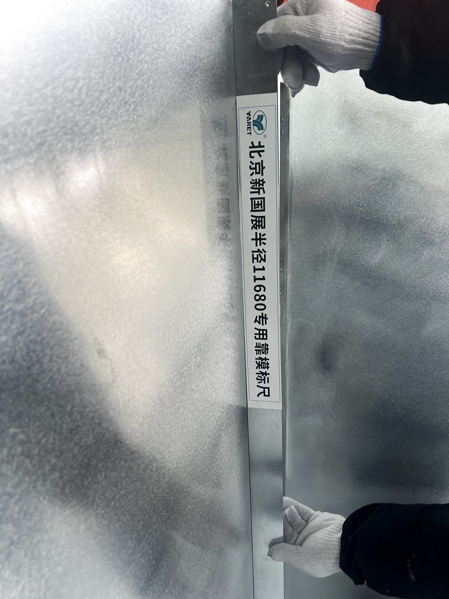 北京新國展“紫金絲帶”褶皺板,每件板上下、左右角度都有區(qū)別變化,左右呈發(fā)散式布局安裝,上下角度變化2.5度。尺寸偏差不超±1毫米,角度偏差不超過±0.5度,每件板都需專用模標(biāo)尺測量弧度。